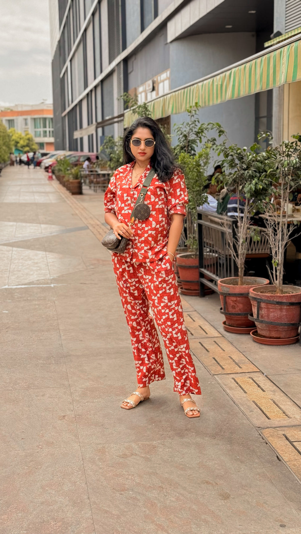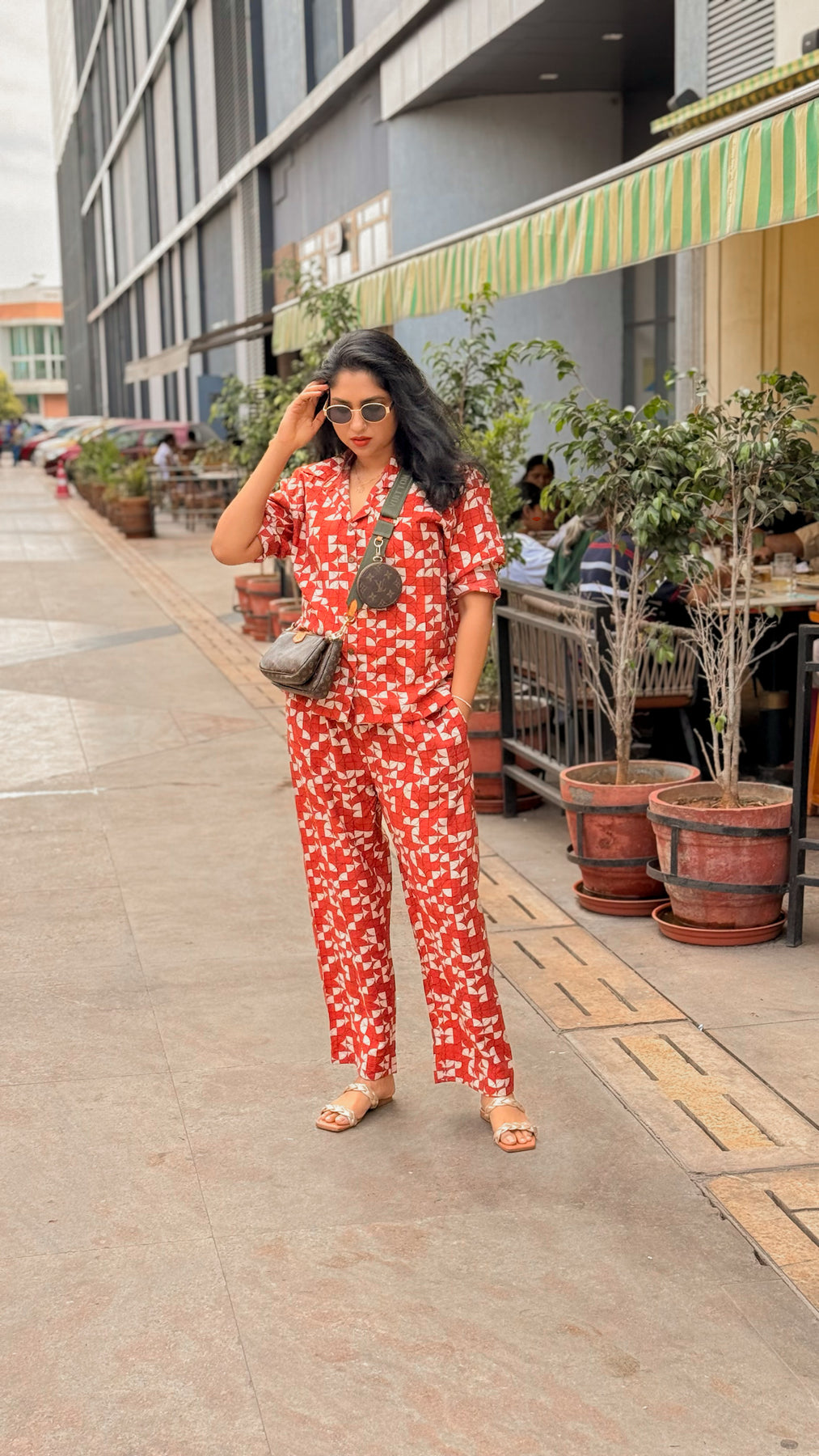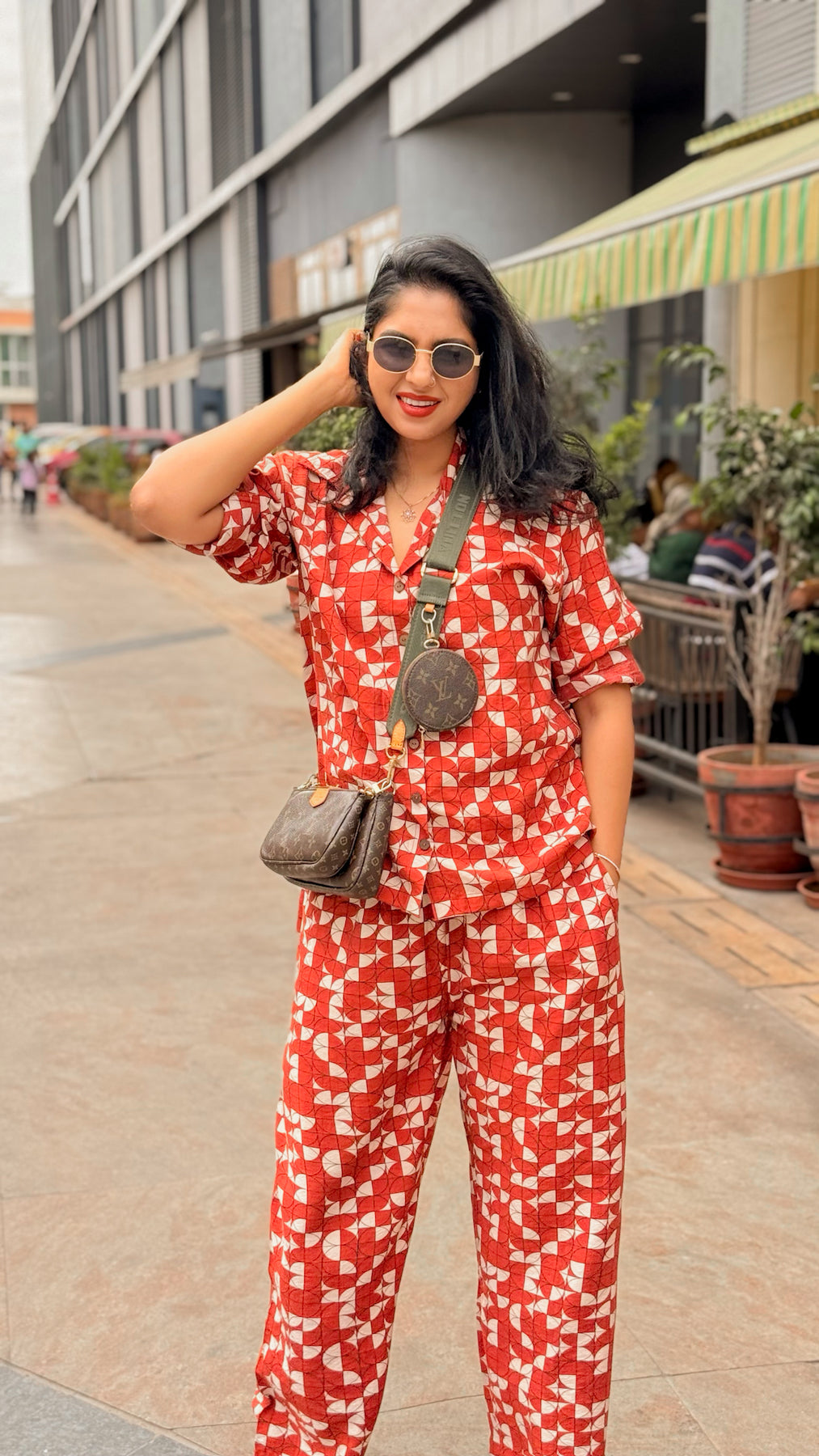 Effortlessly bold, The Rust Co-ord Set brings together comfort and confidence in one easy look. Crafted from breathable fabric in a statement terracotta-red hue, this two-piece set features a geometric print with abstract white shapes that add playful energy to your everyday wardrobe. The relaxed-fit shirt with a notch collar pairs seamlessly with the easygoing straight-cut trousers, offering a chic silhouette without compromising comfort.