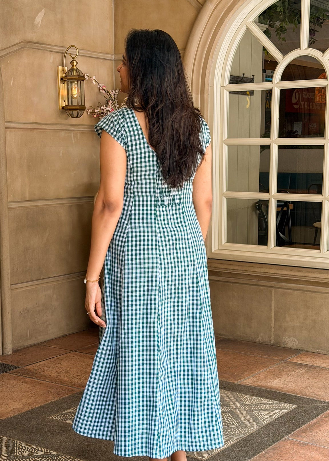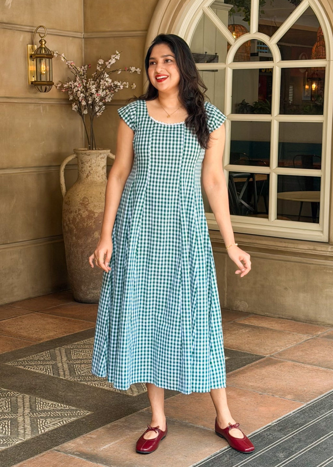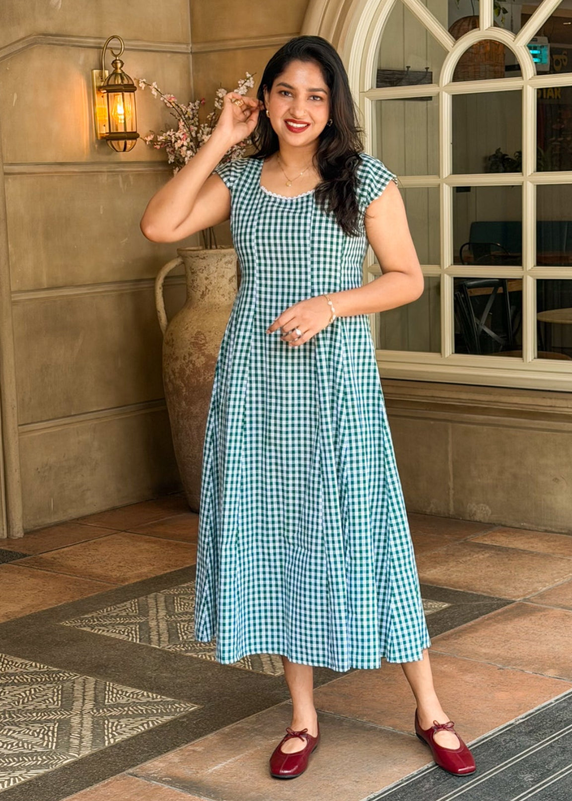 Your go-to for sunlit days and breezy moods. Crafted in Pure Handloom cotton with vertical blue and white stripes, this midi dress flatters every silhouette with its effortless flow.