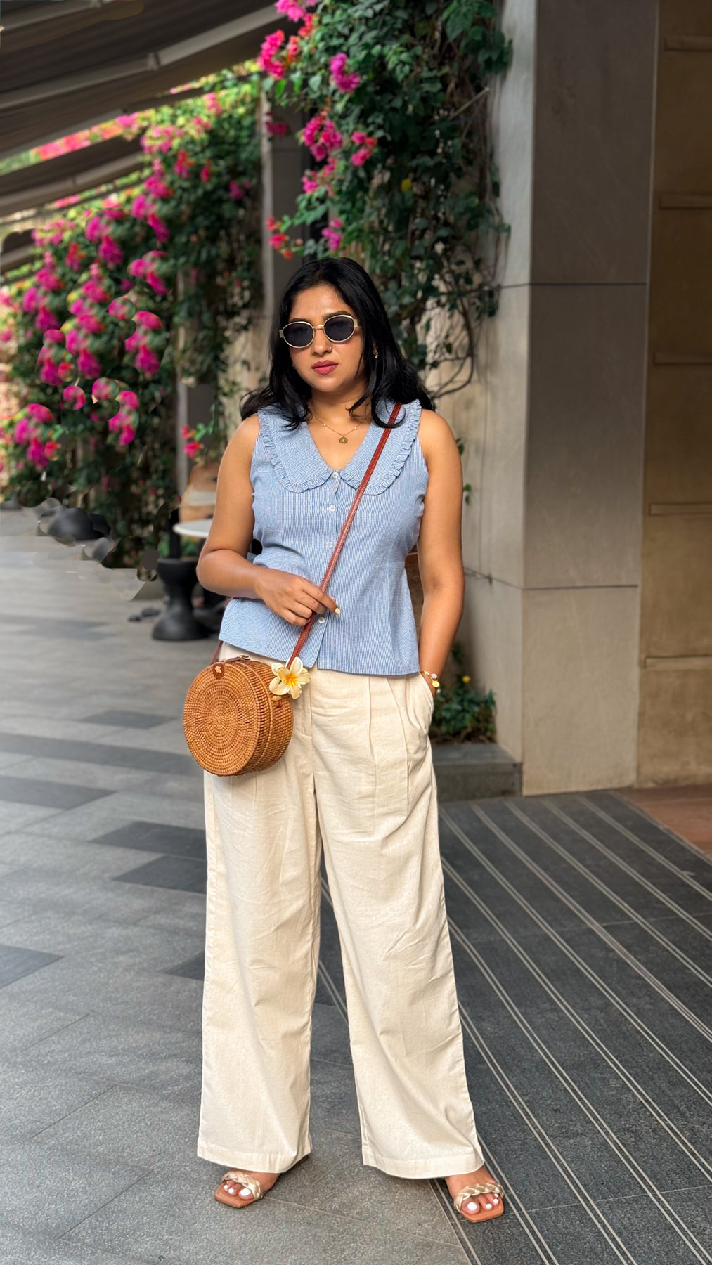 1. Details : Elevate your everyday wardrobe with these high waitst wide-leg pleated trousers, crafted from a premium linen-cotton blend for breathable comfort and effortless elegance. The soft off-white hue and fluid pleats create a flattering silhouette that moves gracefully with every step, making them perfect for both workdays and weekend escapes. Designed for versatility, these trousers are lightweight yet structured, ensuring all-day ease without compromising on style.